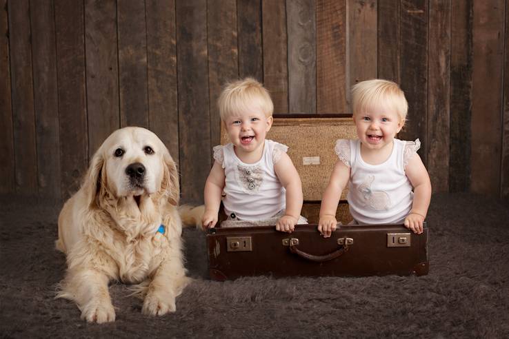 Толкова очарователно... О, близнаците също са сладки. Шегуваме се, разбира се! Близнаците и кучетата са еднакво сладки, а заедно са истински разкош.