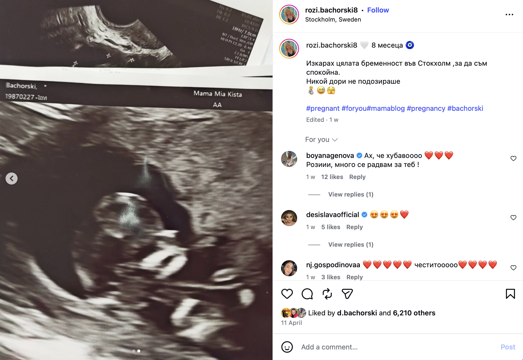 Щастливата вест дойде от сестра му Розалия, която още през януари ражда здрав син в Швеция, където от години живее. Самата тя крие цялата си бременност от публично внимание, защото е убедена, че "щастието обича тишината".