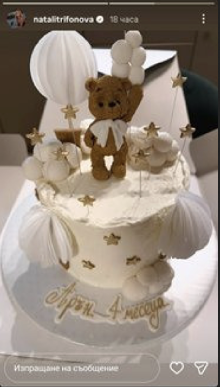Иначе тържеството за бебето беше много сладко – с торта с меченце, балони, облаци и златни звездички... Както и гости, които са най-близките хора на Трифонова. Щастливата майка на Арън обаче дори не спомена, дори не тагна Мартин в постовете си за събитието.