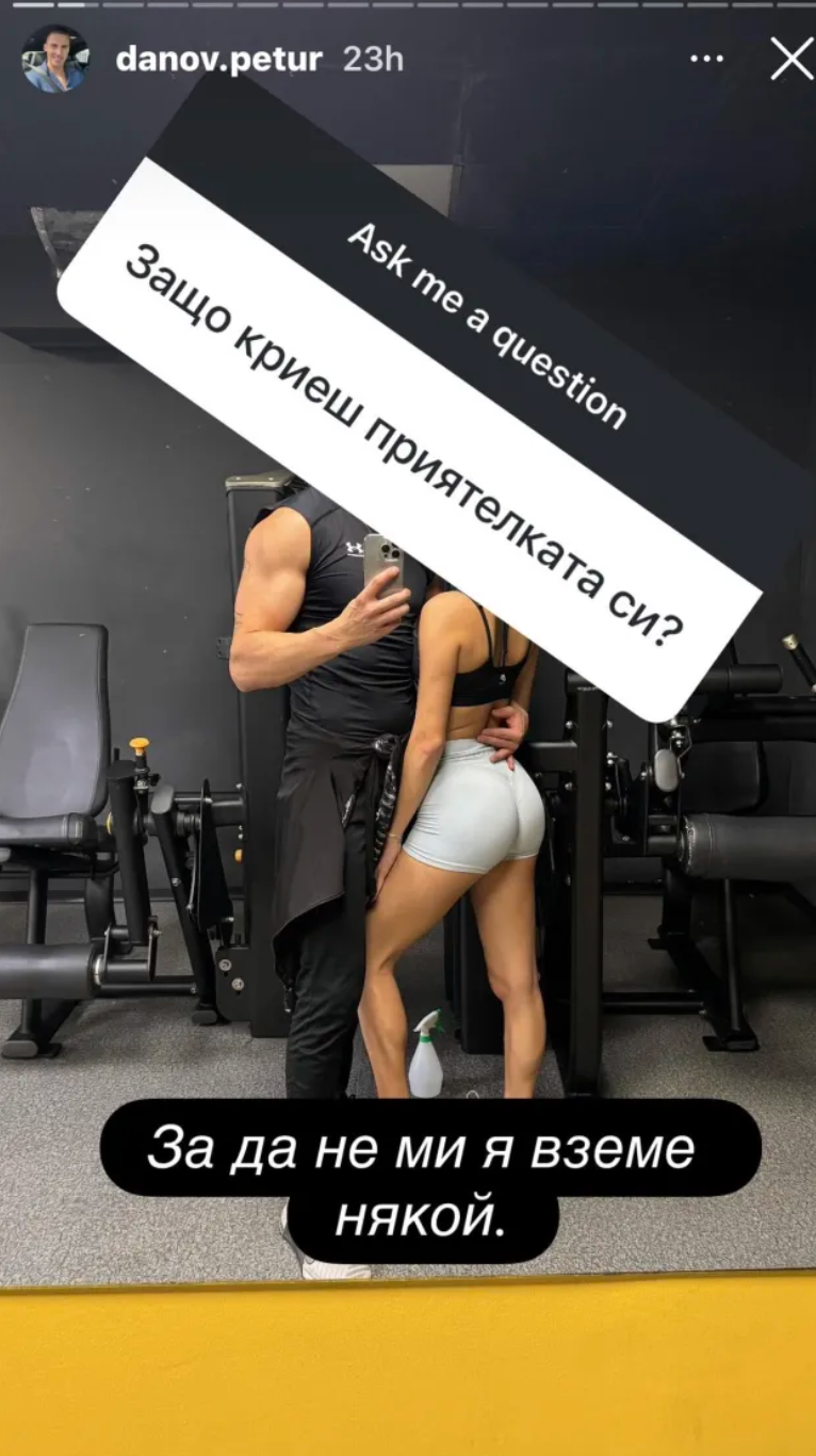 Истинската любов обаче го открива малко след края на предаването. В своя Instagram профил Петър публикува кадър, който предизвика любопитството на последователите му – нежна женска ръка с елегантен червен маникюр. За феновете това беше повече от ясен знак, че в живота му има специална жена. Дни по-късно актьорът показа още един детайл – снимка от фитнеса, на която тренира в компанията на същата дама, макар лицето ѝ да остана извън кадър.